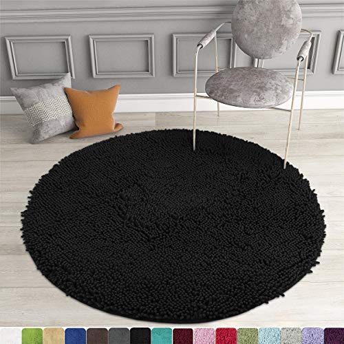 MAYSHINE Round Non-Slip Chenille Shaggy Machine-Washable Dog Door Mat Black (3 Feet Diameter)