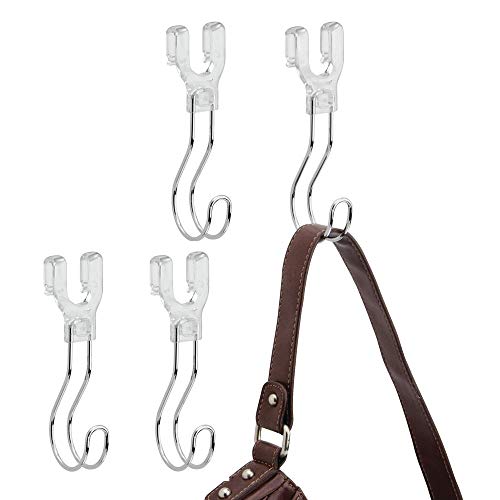 Metrodecor Part#: 5756MDCO 841247157566 - mDesign Hanging Closet Storage Hook - Organizes Handbags, Scarves, Ties, Belts, Accessories - Great for Men, Women & Kids Bedroom, Hall & Coat Closet - Hangs Below Wire Shelving, 4 Pack - Chrome/Clear