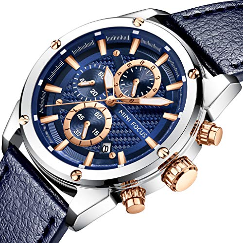 Men Watches Business, MF MINI FOCUS Quartz Wrist Watch (Fashion, Blue, Casual), Design Leather Band Strap Wristwatchs for Men Gift