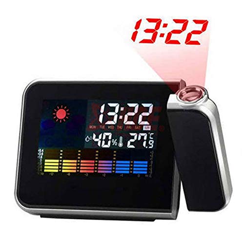 Mercu Projection Alarm Clock with 3.7" Digital Weather Black LED, Auto Time Set, Dual Alarm, Nap/Sleep Timer, Temperature/Day/Date Display with Dimming(Black)