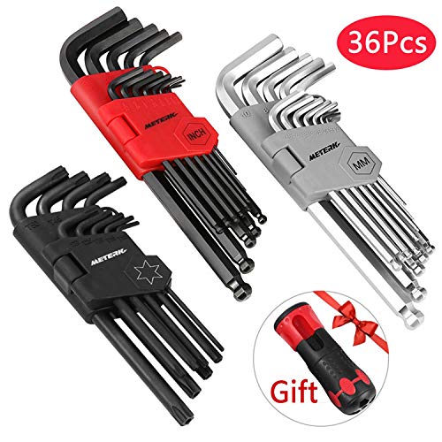 36Pcs Hex Key Meterk Allen Wrench Set, Inch/Metric/Star, Long Arm Ball End Hex Key Socket Head Screw Wrench Multi-size Internal Hexagonal Spanner, Bonus Free Strength Helping T-Handle