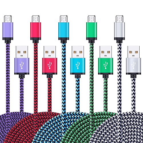 Micro USB Cable,5Pack 6.6FT/2M Ailkin Quick Charge Cable Braided Micro USB 2.0 A Male to Micro B USB Charger Cord for Samsung Galaxy S6 S7 Edge Plus, LG,Moto X, HTC, Android Tablets and More