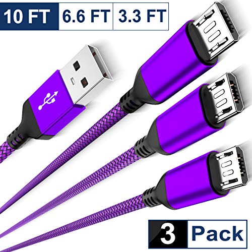 Micro USB Charger Cable 3-Pack (3.3/6.6/10FT),Nylon Braided Charging Power Cord for Samsung Galaxy S7 S6 Edge Plus S6+ S4 7 6,Note 5 4 A7 A9 A10 J5 J7 J8,LG K30 K20,Kindle Fire 8 10 Oasis Paperwhite