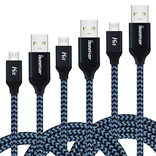 iSeeker 3 packs (1pack/10ft,1pack/6ft,1pack/3.3ft)Nylon Braided Micro USB Cable.Extra cables fit for your variety of daily use,