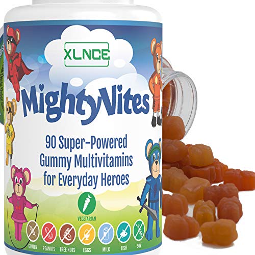 Xlnce Part#: 820103129091 - MightyVites Children's Gummy Vitamin: Extra Strength Multi-Vitamin with A, B, C, D, Biotin Booster. Super Powered Veggie Gummie Bears, Kosher & Halal, Made in The USA for Kids, Teens, and Toddlers.