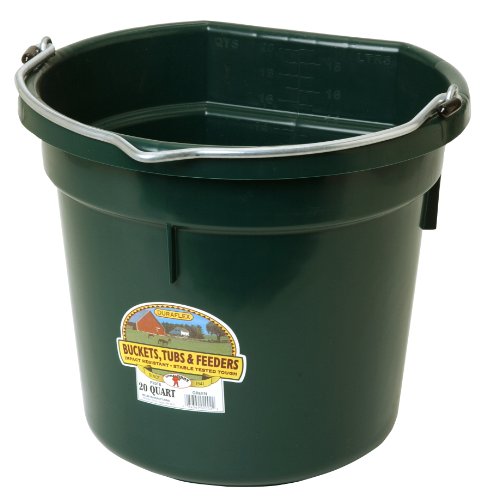 Miller Manufacturing P20FBGREEN Green Flatblack Bucket 20 Quart has a flat back to fit compactly against a wall or fence. Bucket makes it easier to haul heavy loads of feed or water. Heavy duty construction holds up to many purposes. Metal handle.Features: