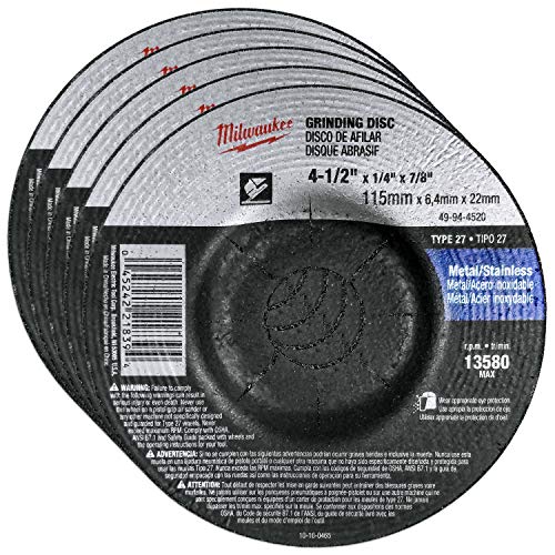 - 5 Milwaukee Premium 4-1/2" Depressed Grinding Wheels for Metal | 4-1/2-Inch x 1/4-Inch x 7/8-Inch | Optimized for Milwaukee 4-1/2" Angle Grinders and compatible with All 4-1/2" Angle Grinders with 5/8" arbor
