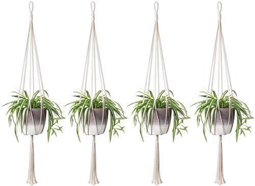 Mkono 4PCS Macrame Plant Hanger Indoor Outdoor Hanging Planter Basket Cotton Rope Home Decor 40 Inch