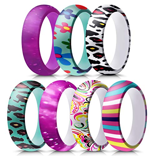 Mokani Silicone Wedding Ring for Women, 7/4/1 Pack Bohemian Thin Rubber Band, Fashion, Colorful, Comfortable fit, Skin Safe