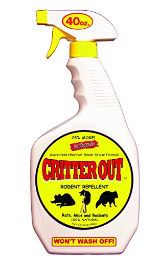 LaTorre's Critter Out is a safe all natural solution to effectively repel rats, mice, raccoons, opossums, chipmunks and many other rodents and pests from your home, sheds, RVs, garages and garden. For every pest & rodent killed with traps or poison there are two others that survived and thrived within the same area...You must use a repellent to keep all pests away. Pests and rodents literally flee the area after spraying Critter Out.Features: