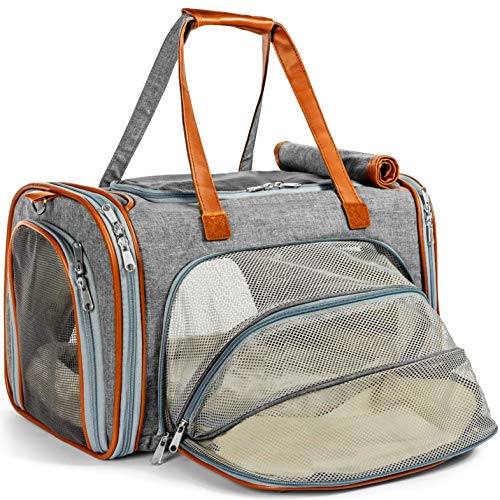 Mr. Peanut's Expandable Airline Approved Soft Sided Pet Carrier, Low Profile Gold Series Tote, Premium Brand Self Locking Zippers, Plush Faux Fleece Bedding with a Sturdy Plywood Base