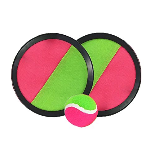- Catch and Toss Game includes 1 ball covered with touch fastener and 2 handheld stick disc paddle, the paddle is equipped with self-stick construction that can catch/stick the velcro ball easily, the disc is equipped with velcro bands in the back to keep in place.
