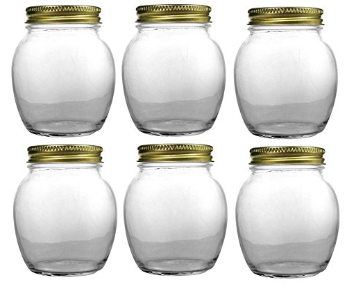 - Nakpunar 6 pieces 12 fl oz (16 oz) Globe Glass Jars with Gold Lids (For 12 jars please search B07DX9XGS9 )