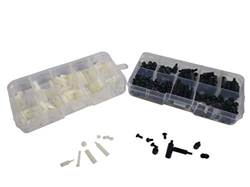 Nalakuvara Part#: HRD-PN-79084348 - NALAKUVARA 300pcs M2 M3 Nylon Hex Nuts Spacers Screws Stand-Off Plastic Accessories Assortment Kit (Black+White) Come with Plastic Box