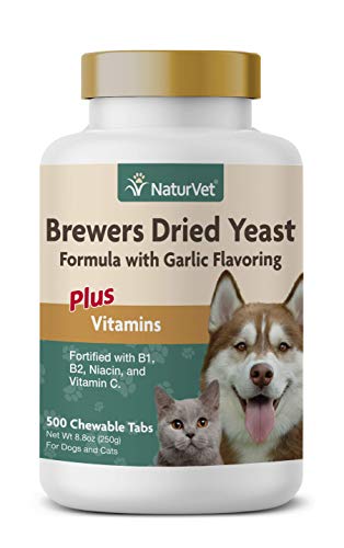 NaturVet - Brewer's Dried Yeast Formula with Garlic Flavoring - Plus Vitamins - Supports Healthy Skin & Glossy Coat -Fortified with B-1, B-2, Niacin & Vitamin C -for Dogs & Cats (500 Tablets)