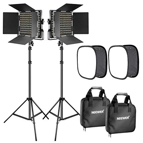 Neewer Part#: 90089829 - Neewer 2 Pieces Bi-color 660 LED Video Light with Stand and Softbox Kit: (2)3200-5600K CRI96+ Dimmable Light with U Bracket and Barndoor (2)Light Stand (2)Softbox for Studio Photography Video Shooting
