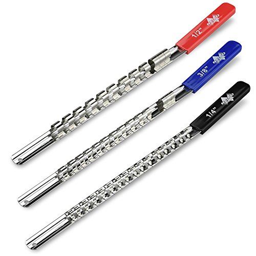 The Neiko Socket Rail Set comes with three socket holders with 16 rails each. The set includes socket holding for the following drive sizes: 1/4, 3/8 and 1/2-inch drives.Features: