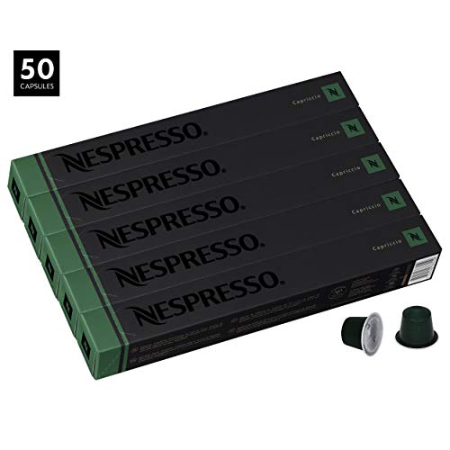 Nespresso Capriccio Capsules for OriginalLine by Nespresso, 50 Count Espresso Pods, Light Roast Intensity 5 Blend |South American Arabica & Robusta Coffee Flavors