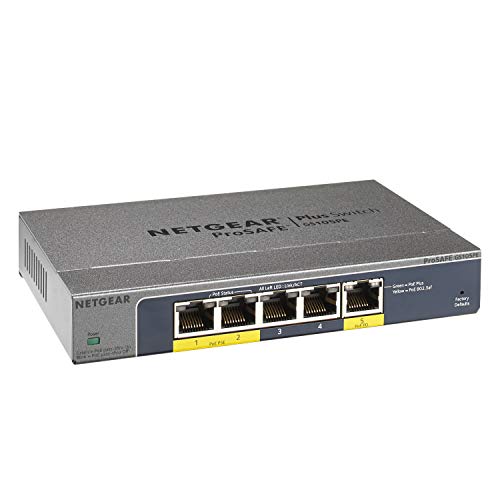 NETGEAR 5-Port Gigabit Ethernet Smart Managed Plus PoE Switch (GS105PE) - with 2 x PoE PD Powered @ 19W Pass-thru, Desktop, and ProSAFE Limited Lifetime Protection