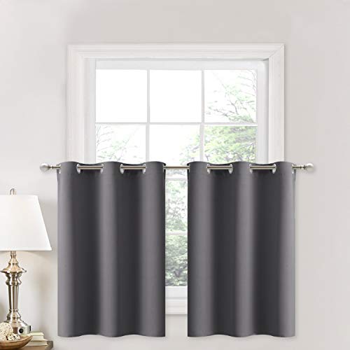 NICETOWN Kitchen Curtains Blackout Valances - Thermal Insulated Blackout Grommet Tier Curtains Drapes Window Treatment Home Decor for Basement/Dorm (42W by 36L + 1.2 inches Header, Grey, 1 Pair)