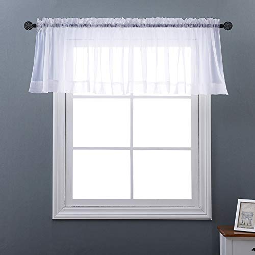 Nicetown Part#: NTUSRPVOILE6020V03 - NICETOWN White W60 x L20, Short Voile Sheer Valance Rod Pocket Panels for Kitchen, Cafe, Flat & Other Small Windows, 1 Panel