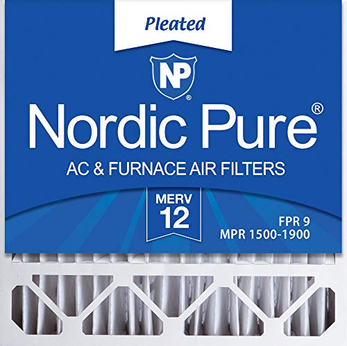 Nordic Pure MERV 12 Pleated AC Furnace Air Filters provide exceptional filtration for both home and commercial environments. Each time air passes through a Nordic Pure pleated furnace air filter, lint, dust, pollen, bacteria, pet dander, dust mites, mold spores, smoke particles, virus carriers, allergens and other contaminants are removed. MERV 12 furnace filters are comparable to HVAC filters with the rating of MPR 1500-1900 or FPR 9. While different companies use different scales to measure the air filter’s efficiency, Nordic Pure chose to follow the industry standard, MERV, as developed by ASHRAE (the American Society of Heating, Refrigeration and Air Conditioner Engineers). No matter the name of the rating, the efficiency of all air filters is rated according to the same criteria as set forth by ASHRAE. Nordic Pure furnace air conditioner filters are manufactured using a heavy duty, moisture resistant beverage board frame. As with all Nordic Pure furnace air conditioner filters, the material is electrostatically charged to attract unwanted particles. The media used will not promote the growth of bacteria or mold on the air filter and is better at trapping airborne particles than fiberglass filters. Our attention to the smallest of details results in a healthier living space. For fresh, clean air in your home and office, it is important to regularly change your AC filter, especially during home improvements. We recommend changing your HVAC furnace filter every 1-3 months, depending on your unique home or office environment. People with pets or those who suffer from allergies should change their A/C air filters more often. Replacing your air filter regularly not only improves indoor air quality, it helps your HVAC unit perform more efficiently. Important Note: Almost all air condition filters have a different Actual Size (the exact dimensions) than Nominal Size (the name) printed on the air conditioning filter. It is best to measure the exact size of your A/C filter and compare it to our Actual Size to be sure your HVAC replacement filter fits!Features: