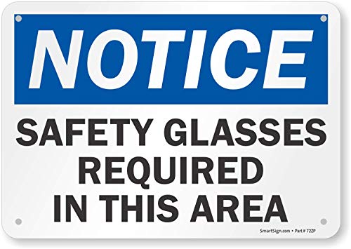 Industry Leading DurabilityOur Plastic signs are made from 55 mils thick, tear-resistant HDPE (High Density Polyethylene) material. These plastic signs are perfect for indoors and limited outdoor use. These signs have a 2-year outdoor warranty, but most signs last longer. Our signs are laminated for enhanced performance. Semi-flexible plastic allows the sign to conform around slight curves. Our Notice - Safety Glasses Required In This Area signs are better than comparable styrene signs, which become brittle and break.