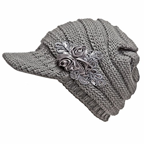 Nykkola Part#: SG_B00FCFTVY4_US - Women's Cable Knit Visor Hat with Flower Accent Grey Color