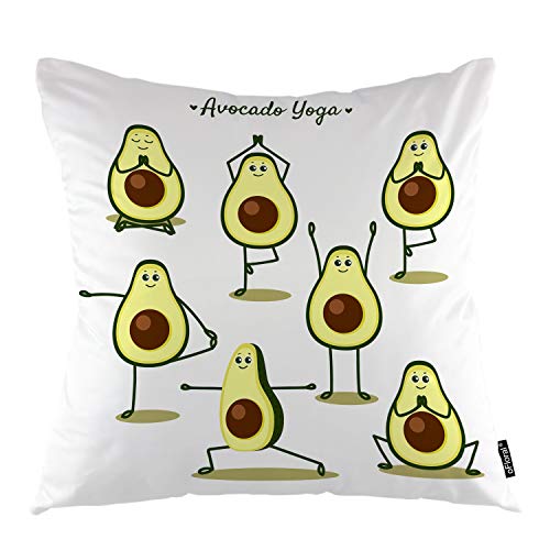 Ofloral Part#: MING-PILL1221-020 - oFloral Avocado Throw Pillow Covers Cartoon Avocado Doing Yoga Poses and Fruits Decorative Square Pillow Case 18"X18" Pillowcase Home Decor for for Sofa Bedroom Livingroom