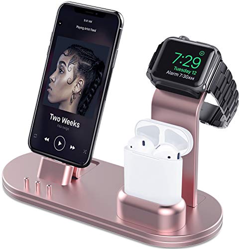 OLEBR Charging Stand Compatible with iWatch 5 and 4 Watch Charging Stand for AirPods, iWatch Series 5/4/3/2/1,iPhone 11/11 Pro/11 Pro Max/Xs/X Max/XR/X/8/8Plus/7/7 Plus /6S /6S Plus/iPad-Rose Gold