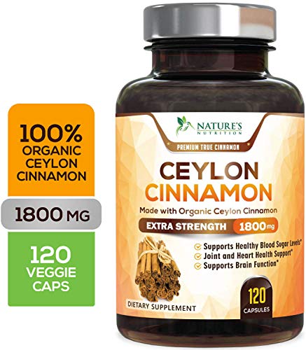 Nature's Nutrition Part#: - Organic Ceylon Cinnamon Capsules Highest Potency 1800mg - True Organic Ceylon Cinnamon Pills - Blood Sugar Levels Support Supplement, Best Vegan Anti-Inflammatory for Joint Pain Relief - 120 Capsules