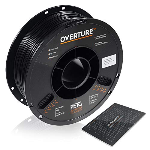 Overture Part#: OVPETG175 850006233403 - OVERTURE PETG Filament 1.75mm with 3D Build Surface 200 x 200 mm 3D Printer Consumables, 1kg Spool (2.2lbs), Dimensional Accuracy +/- 0.05 mm, Fit Most FDM Printer, Black