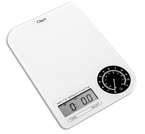 Ozeri ZK18-WB Rev Digital Kitchen Scale with Electro-Mechanical Weight Dial, Black Dial