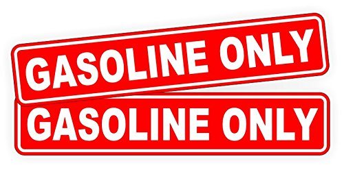 2-pack of durable vinyl GASOLINE ONLY stickers. Each decal measures 1-1/4" t all x 6-1/4" wide. Decals are red with white text.Features: