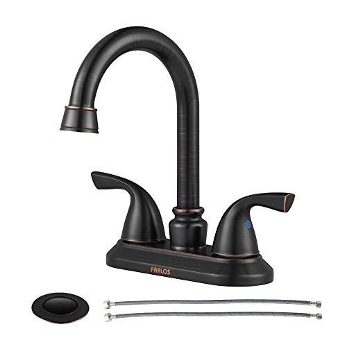 PARLOS Double-Handle Lavatory Faucet with Drain Assembly and Supply Hose Lead-free cUPC Bathroom Faucet Mixer Two-Handle Lavatory Vanity Utility Laundry Faucet Oil Rubbed Bronze, 13592