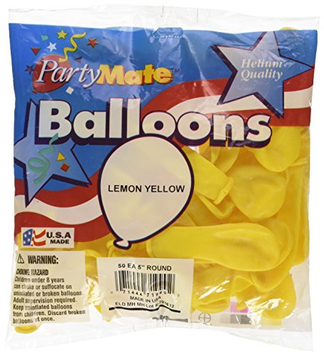 Partymate Part#: 71990 071444719902 - PartyMate 71990 Made in the USA Royal Rich Color 5-Inch Latex Balloons, 50-Count, Lemon Yellow