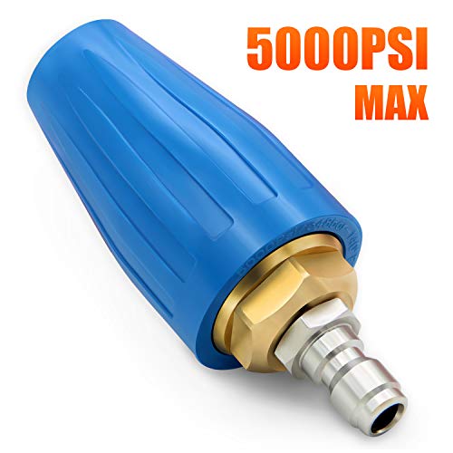 The nozzle automatically spins a zero degree spray in a 4-8 inch circle at 3000 rotations per minute.It has proven to clean 10 times faster than a standard nozzle. Consequently, the spinning water jet hits the surface area from multiple angles, quickly breaking down caked-on dirt and grime. It is even great for stripping paint or cleaning concrete surfaces.Cut your cleaning time in half with this innovative rotary turbo nozzle.