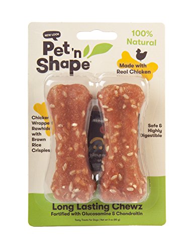 - <p><strong>GRAIN FREE</strong> - Pet 'n Shape natural Long Lasting Chewz are made with 100% natural chicken breast wrapped around a rawhide chew and sprinkled with brown rice crispies. Pet N Shape’s Long Lasting Chewz are fortified with glucosamine and chondroitin to help maintain joint health and promote good dental hygiene.</p>