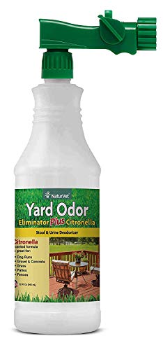 NaturVet - Yard Odor Eliminator Plus Citronella Spray - Eliminate Stool and Urine Odors from Lawn and Yard - Designed for Use on Grass, Patios, Gravel, Concrete & More - 32oz with Hose Nozzle