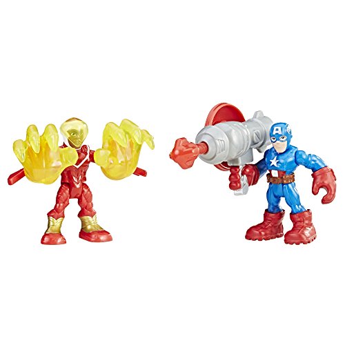 Young heroes can imagine joining Captain America and Falcon on action-packed adventures! Sized right for little hands, these figures get a boost with the Playskool Heroes power up arms. Kids can power up these figures with removable arms that snap on and off, and pretend to make their favorite super heroes even more mighty! Get the Captain America figure armed and ready with his shield, and the Marvel’s Falcon figure geared up with his talons! Help the Captain America figure launch his projectile to save the day!Marvel products are produced by Hasbro under license from Marvel Characters B.V. Hasbro, Playskool, and all related terms are trademarks of Hasbro.