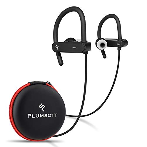 Plumsott Part#: BLK01 708022297162 - Bluetooth Wireless Headphones for Workout | Sports Noise Cancelling Earbuds for iPhone | Running Over Ear Headset | Best Built in Mic | IPX7 Rated Waterproof | Gym Cordless Earphones | Black