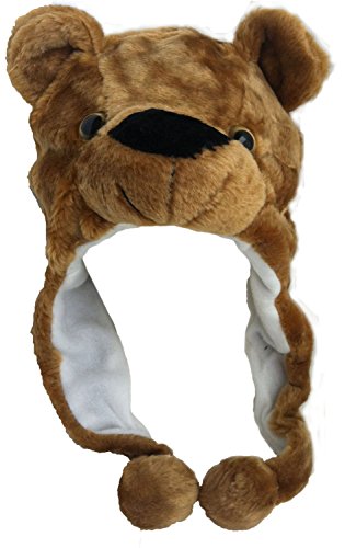 Plush Faux Fur Animal Critter Hat Cap - Soft Warm Winter Headwear - Short with Ear Poms and Flaps & Long with Scarf and Mittens available (Brown Bear - Short)