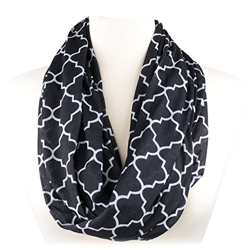 - ONLY BUY FROM SHOP POP FASHION, ALL OTHER SELLERS ARE SELLING COUNTERFEIT PRODUCTS - TODAY SHOW DEAL OF THE DAY - Super Soft, lightweight, infinity scarf, perfect for travel, fashion scarf with quatrefoil pattern design, Jersey cotton soft, with hidden zipper pocket for phone, wallet, passport, money, keys, ID, or credit cards