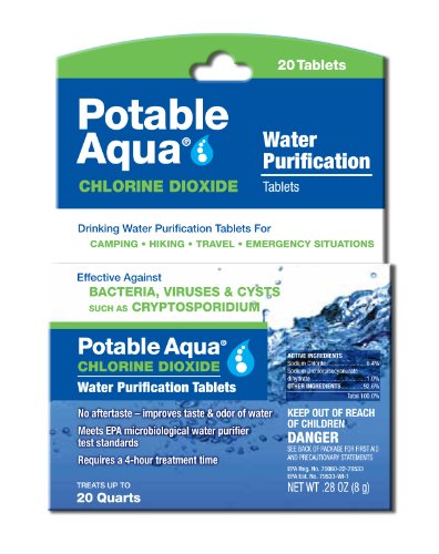 Potable Aqua the most trusted name in water purification products. Potable Aqua products provide time-tested, simple-to-use water treatment optiions for campers, backpackers and other outdoor enthusiasts. No aftertaste-improves the taste and odor of water.Features: