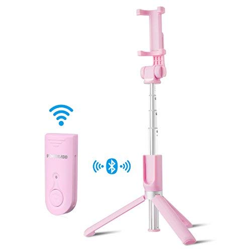 Poweradd Selfie Stick Tripod Extendable/Foldable Aluminum Selfie Stick with Detachable/Wireless Remote Compatible with iPhone X/SE/6/6s/6 Plus/7/7 Plus/8/8 Plus/,Samsung 8/S8/S8 Plus,Nexus,LG,Moto and More-Pink