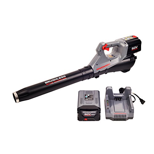 60V Brushless Jet Blower POWERWORKS - Performance through Power – POWERWORKS 60 Volt tools are designed to get the job done! Our 60V Axial Blower is the most revolutionary battery-operated system delivering powerful performance and durability. 60 Volts gives you the power you need and the 2.5Ah Lithium-Ion battery provides ample run-time. Easily power through your yard work. Our 60V POWERWORKS Battery is compatible with all our POWERWORKS 60V tools, simply take the battery out of one tool, place it in another and you’re ready for your next job. Use one battery, charge one battery and you will have all the continual run-time you need. No gas and no maintenance required. POWERWORKS 60V Brushless Axial Blower features include: Cruise control, a variable speed trigger and performance of 120 MPH/450 CFM. Our POWERWORKS brushless motor provides your POWERWORKS tool with longer run-time, more torque and more power. This leads to less wear and tear, extending the life-time of the tool. POWERWORKS tools come with a 4-year warranty on the tool and a 2-year warranty on the battery.Features: