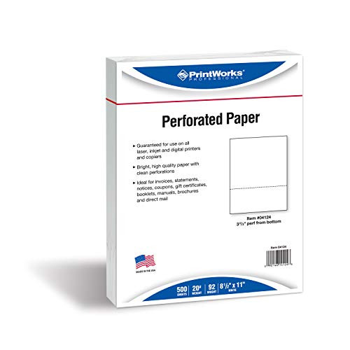 - Perforated paper 8.5 x 11 lays flat making it ideal for both desktop and high-volume production printing and copying - PrintWorks papers are guaranteed to run jam-free on inkjet and laser devices.