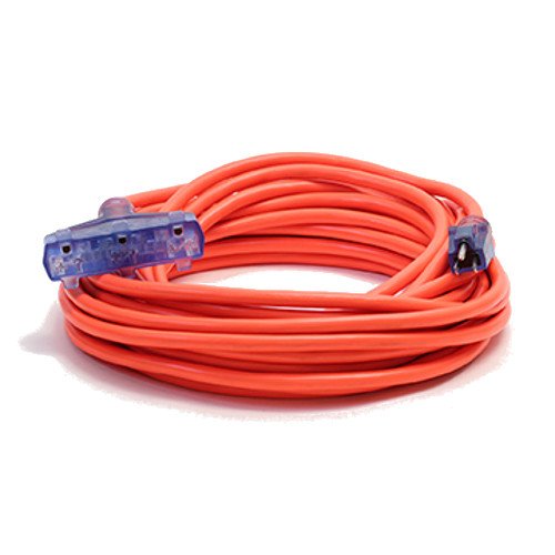 Heavy duty #10 cord. Triple Tap (3 outlets). High visibility neon colors for recognition. Flame resistant. Heavy duty outdoor jacket that is water resistant for added protection against moisture. Heavy-duty molded on 15A-125V plugs and connectors. 5/8" strain reliefs in back of plug and connectors prevent ends from pulling away from cord body. Both plugs have a built in amber neon light which indicates there is power in the cord and outlet.Features: