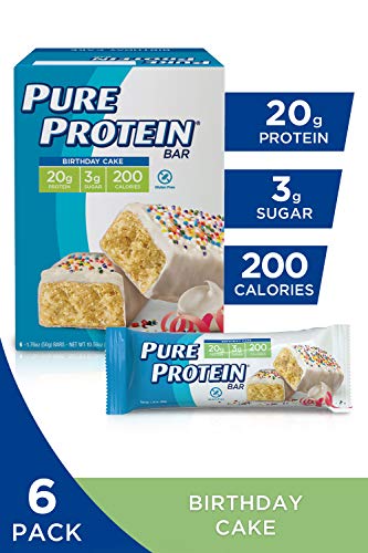 Pure Protein Bars, High Protein, Nutritious Snacks to Support Energy, Low Sugar, Gluten Free, Birthday Cake, 1.76 Ounce (Pack of 6)