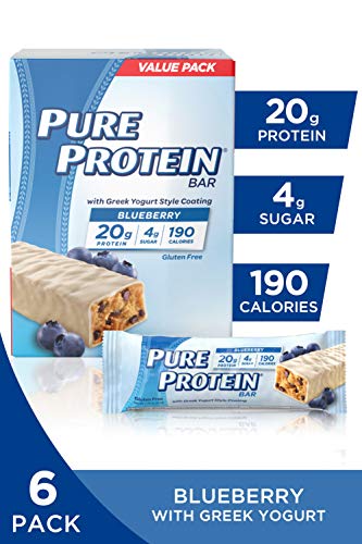 Pure Protein Part#: 749826539645 749826538617 - Pure Protein Bars, High Protein, Nutritious Snacks to Support Energy, Low Sugar, Gluten Free, Blueberry Greek Yogurt, 1.76 oz, 6 Count